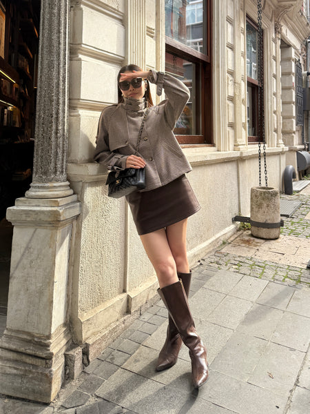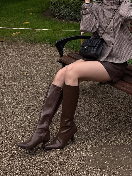 Made of PU leather. Very in trend now! Super durable and comfortable. Tried and tested on uneven floors.